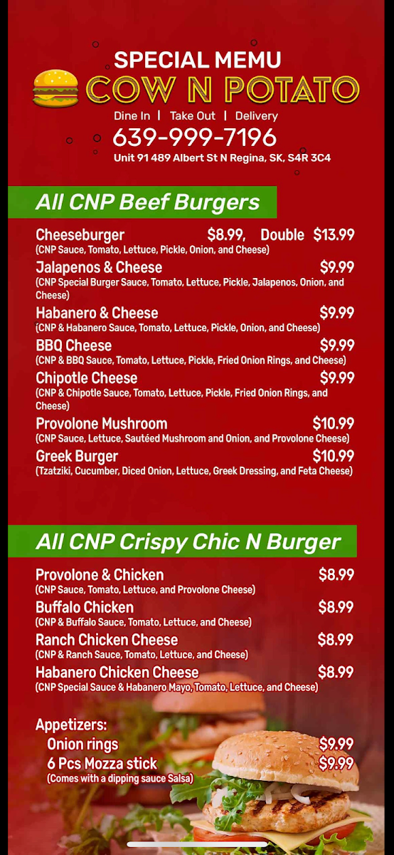 Cow N Potato Food Bar is a hidden gem located at 489 Albert St N in Regina. Specializing in hearty comfort food, this food bar offers a variety of burger options that are sure to satisfy your cravings. From the mouth-watering 1/4 pound beef burgers to the flavorful chicken burgers, there is something for everyone on the menu.